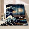 GUOYU Blanket Japanese Wave Fleece Throw Blanket Queen Japanese Style Plush Blanket for Boys Girls Teens Ocean Wave Sherpa Blanket Sea Waves