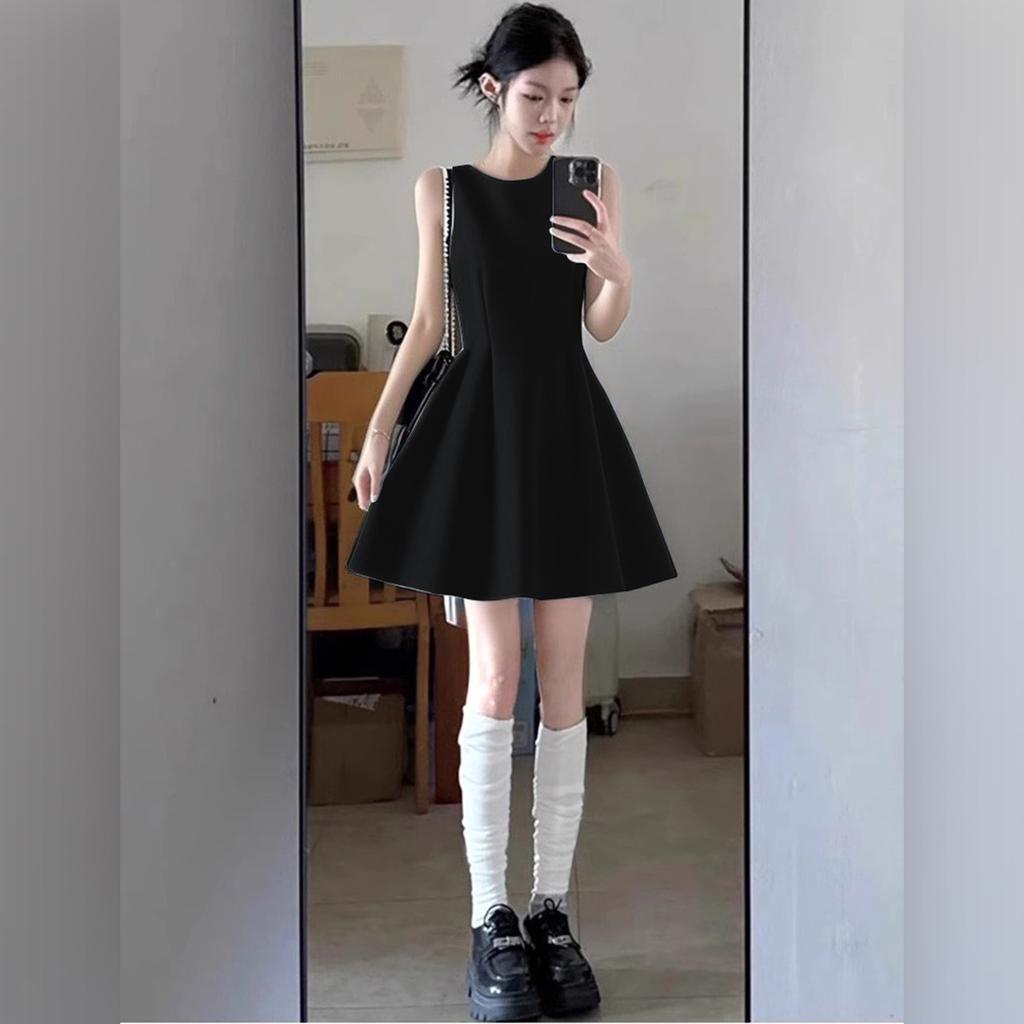 Black daughter sleeveless vest dress dress Hepburn style small black dress summer small fragrant style small waist short skirt