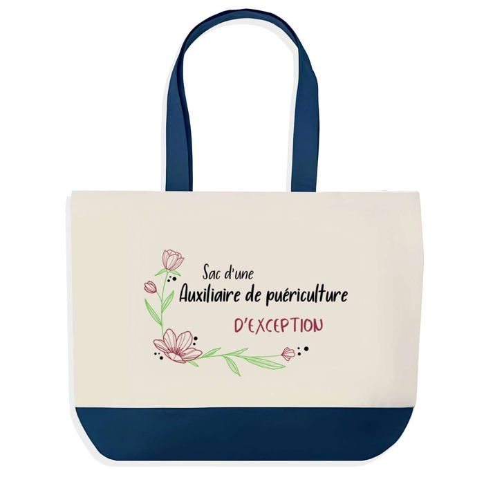 Tote bag - PLANETEE - Sac shopping fond bleu Auxiliaire de Puériculture - Coton - 40x45 cm - Fabriqué en France