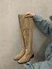 Ρετρό στυλ χοντρό τακούνι δύο τρόπων αναδιπλούμενες μπότες με γούνα λεπτές γουέστερν μπότες καουμπόη ψηλές μπότες αρχές φθινοπώρου νέες μπότες ιππότη γυναικείες