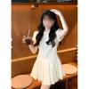 Song Jong-un's collegiate style white puff sleeve shirt dress female summer temperament waist small man sweet short skirt