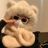 Women Hat Bear Shape Solid Color Winter Knitted Hat with Lace-up Cold Weather Thick Warm Plush Headwear