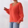 Autumn Winter Loose Casual Fashion Beading Sweater Women V-neck Solid Color All-match Pullover Knitting Top