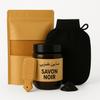 Black Soap with Nila 200g + Kessa Glove + Pumice Stone – Skin Brightening Moroccan Spa Set