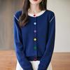 Round-neck Knitted Cardigan, Long-sleeved Women's Color-buttoned Design Sweater Jacket, New for Spring and Autumn