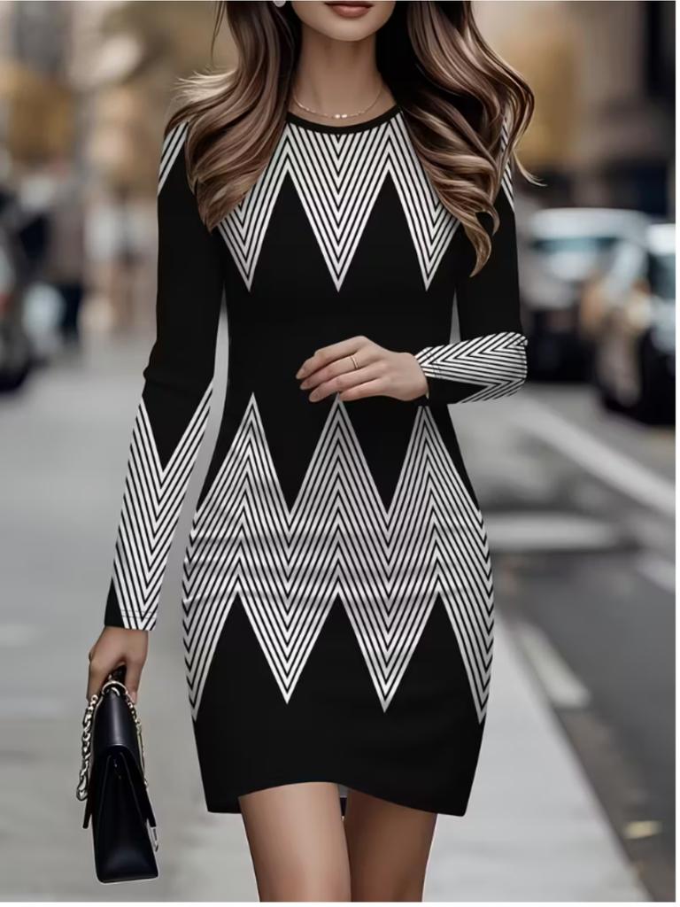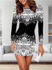 2025 Autumn and Winter New 3D Retro Print and Dyeing Women's Fashion Long-sleeved Round Neck Hip-wrapped Dress Valentine's Day Limited — αγοράστε online στο κατάστημα Joom
