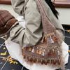 Soft Knitted Tassel Shoulder Bag Patchwork Commuting Tote Bag Trendy Boho Style Handbag Outdoor