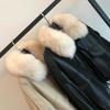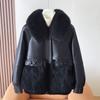 Γυναικείο Μαύρο Κοντό Μπουφάν από Δερματίνη με Επένδυση από Τεχνητή Γούνα Ζεστό Χειμωνιάτικο Παλτό