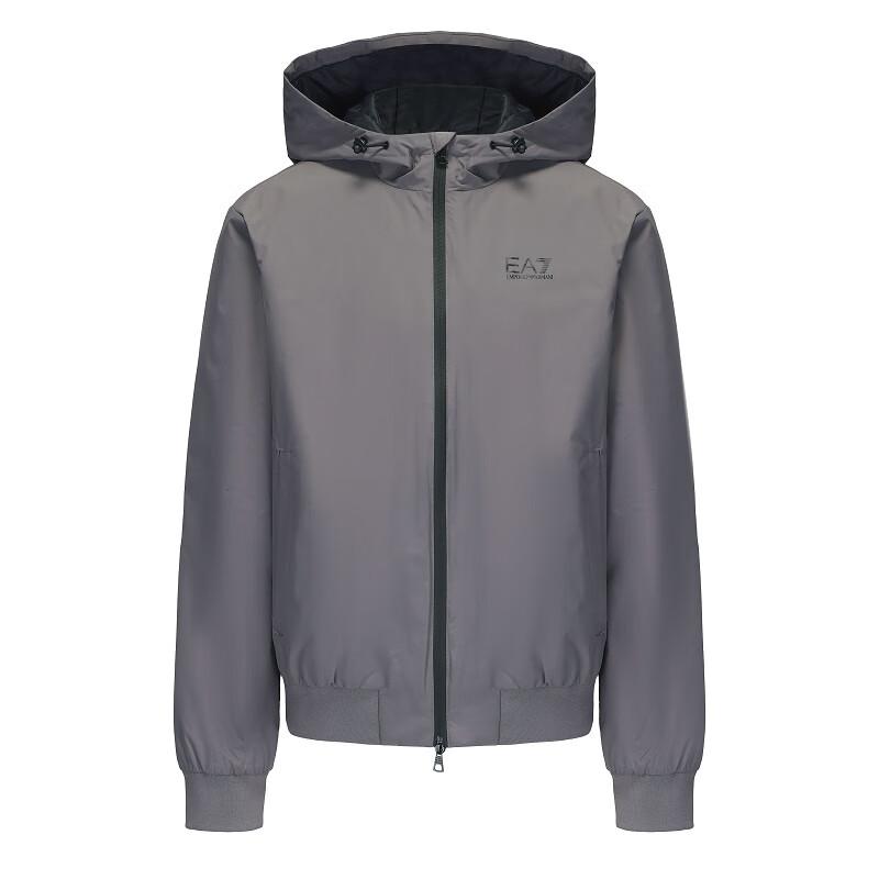 Emporio Armani Ea7 Fw24 Solid Color Letter Logo Printed Hooded Zip Long Sleeve Jacket Men jackets Gray 8NPB21-PNFZZ-1992