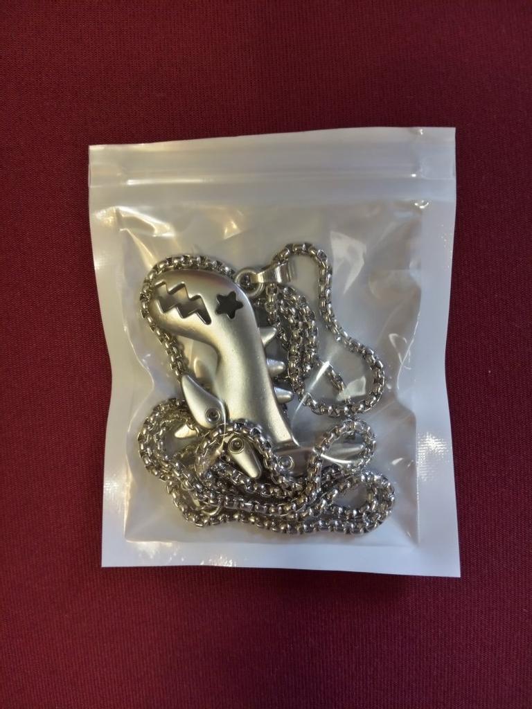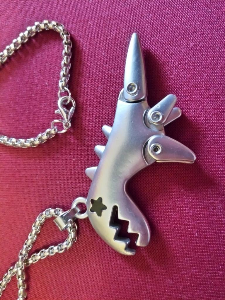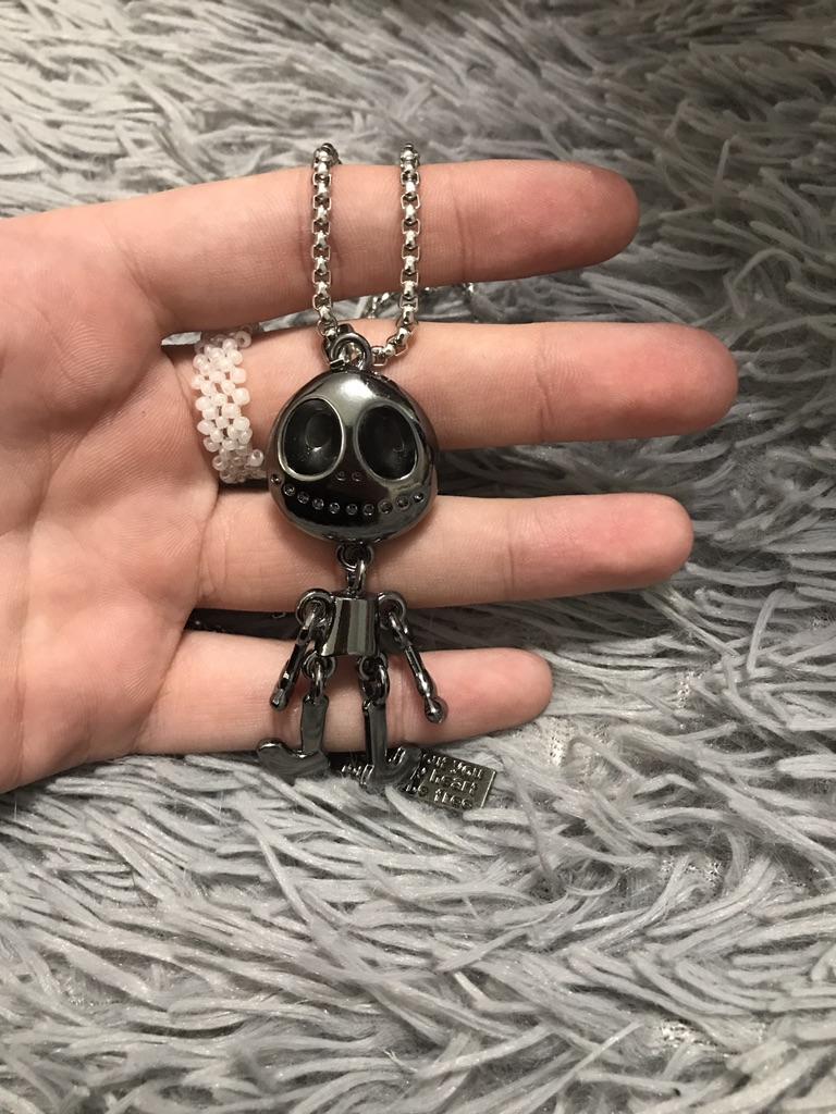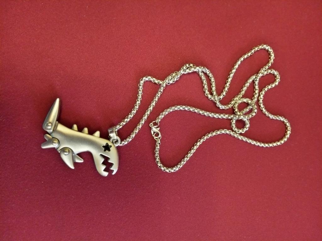 🦖Dinosaur from Google game. The pendant is bright, funny and has moving body parts - legs and a tail. Came in a zip bag that was sealed. Star-shaped eyes (enamel). The length of the chain is 72 cm, the chain is of high quality. In general, a beautiful and unusual decoration, however, on the dinosaur there are noticeable cracks and irregularities, slightly bent cogs. In my opinion, the price is a bit overpriced. The dinosaur itself does not react to the magnet, unlike the chain and the "eye of attachment"