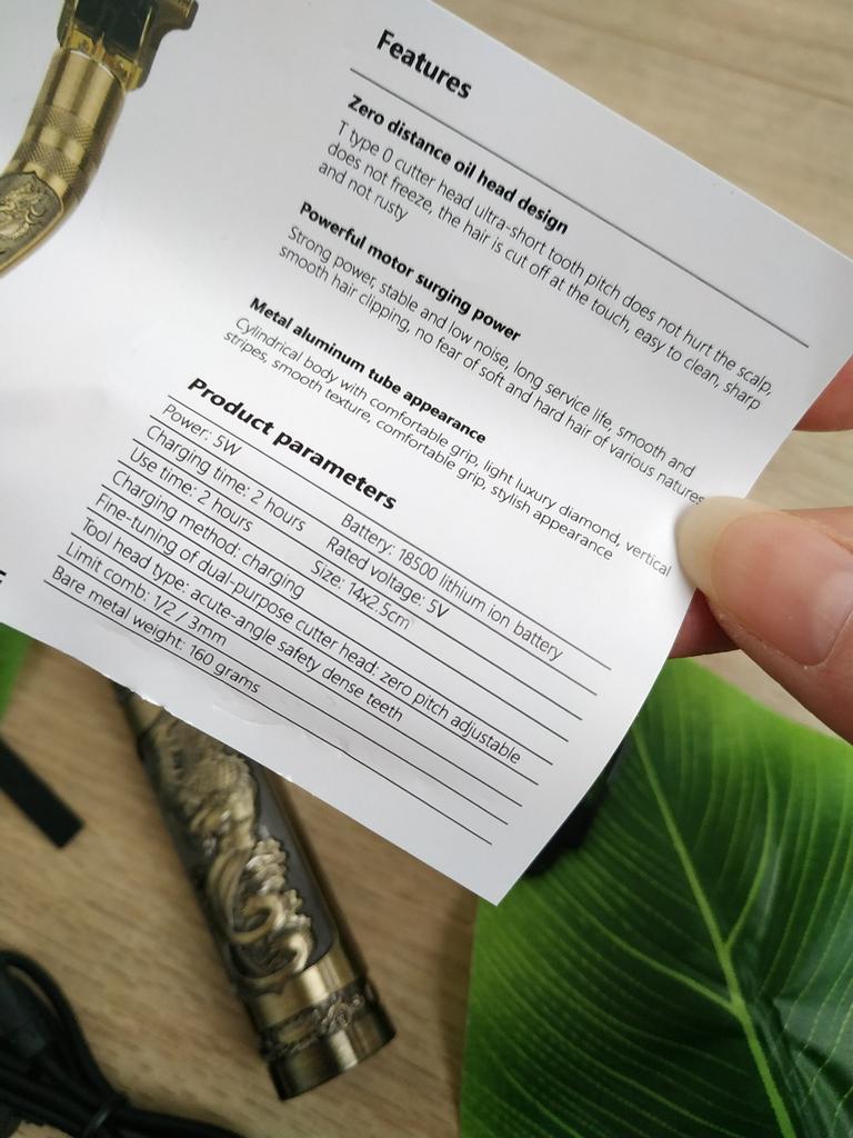 Amazing rechargeable hair trimmer/shaver π§ Outstanding quality!!! The shaving head is made of titanium steel and is washable. Easy to clean! It has a huge battery π which lasts for 2 hours. The dragon design is very cool. My boyfriend is super happy with it! ππ It arrived in just 17 days at home. Order was tracked all the way. Recommended βββββ