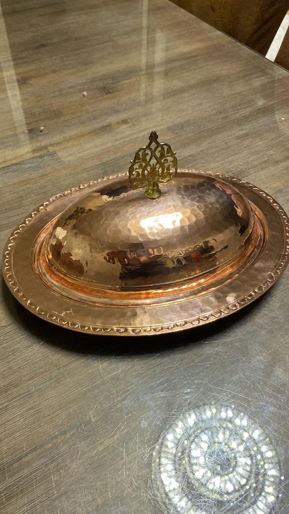 Copper Elliptical Platter, Saltanat Rustic Platter, Traditional Handmade Copper Plate, Authentic Platter, Copper Tray, Presentation Plate With Lid