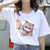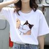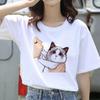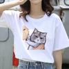 Ming Hong Women T-Shirt Cute Cat Print Oversized Tshirt Summer Female Clothing Ulzzang Harajuku 90s Girls T Round Neck Short Sleeve Tees