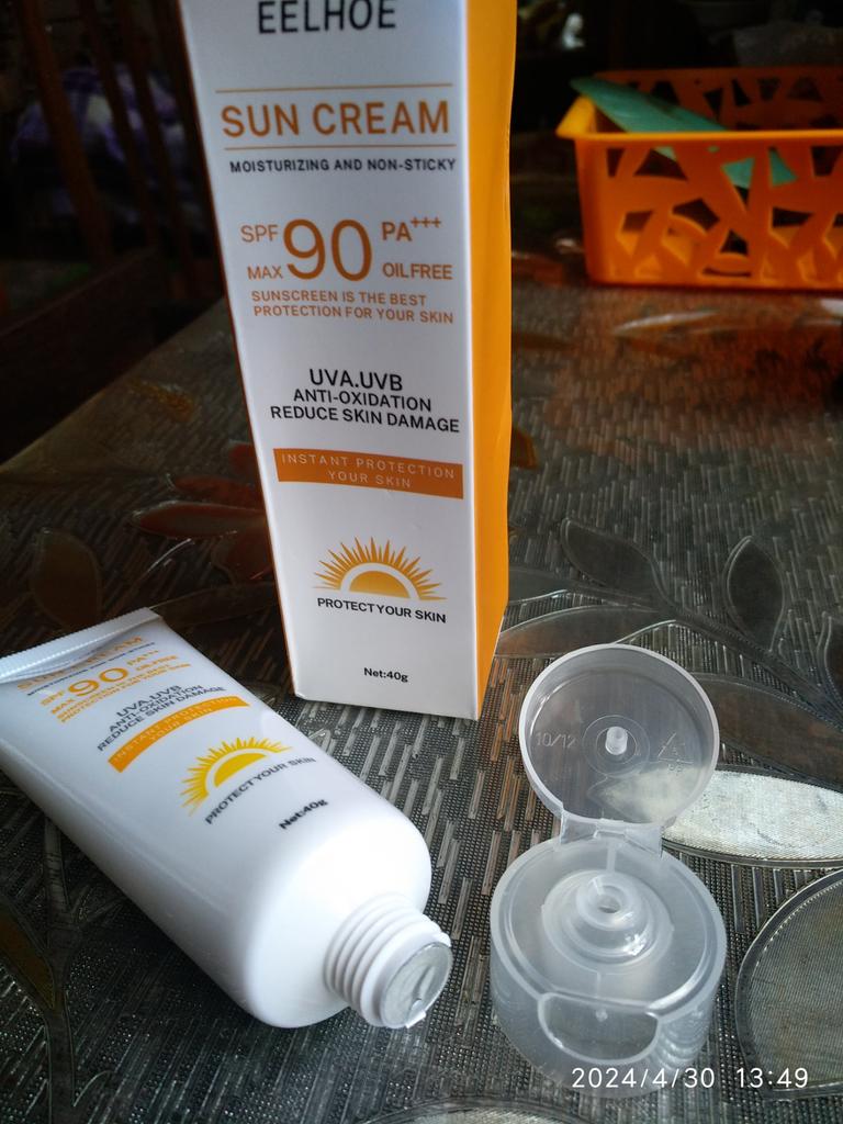 The SPF 90 sunscreen arrived quickly. For the summer, I always look for high sunscreen, because the sun causes pigment spots on me.