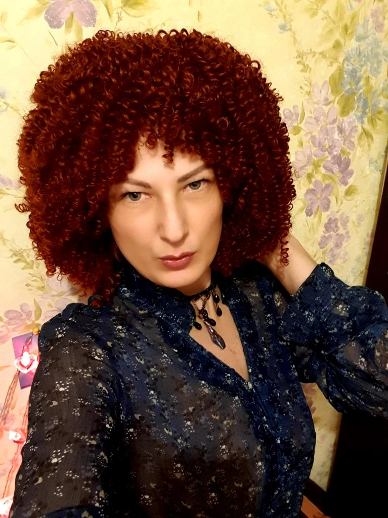 Wig from XINRAN π€β€οΈ This wig is truly beautiful π I love afro or curly wigs as they last longer than straight in my opinion The wig comes I'm many colours and styles from the store I ordered the red as I havnt tried a red curly wig yet. I absolutely love it. The length is shoulder length so won't go as matted since it doesn't rub off your shoulders ππΎ The curls are tight π just how I like them. Inside is a breathable wig cap which you can adjust with elasticated straps to make it tighter or looser depending on your head size. The wig isn't a lace wig but thats ok because the curls come over the hair line anyway π€ͺ The quality of the synthetic hair is great and doesn't have alot of shine so looks quite natural 5 stars π I highly recommend it to anyone Delivery was around 3 weeks to the uk π¬π§ Excellent value for money π° Thankyou joom and joom seller β€οΈ