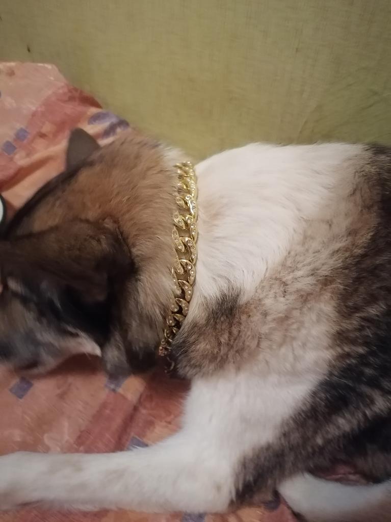 The necklace is whole, bright, it fits the dog. Thanks to the seller and Juma, I recommend it