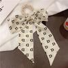 French Vintage Pearl Silk Printing Hair Ribbon For Women Fashion Elastic Hairbands Hair Scrunchie Hair Accessories