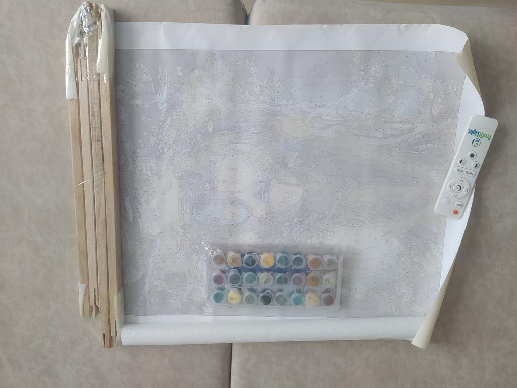 I am delighted! The painting is on canvas, not on paper. Packed well. There are a lot of colors. Three brushes. Slats for the frame (you just need to plaster it additionally). Arrived quickly. Can't wait to start coloring. Thanks a lot!!!