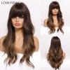 LOUIS FERRE Wine Red Wavy Synthetic Wig Long Wavy Natural Hair With Bangs Daily Cosplay Heat Resistant Fashion Women Wig Hair