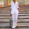 ZANZEA Two Piece Sets Women Long Sleeve Shirt Tops And Long Pants Wide Leg Trousers Casual Loose Suits Plus Size