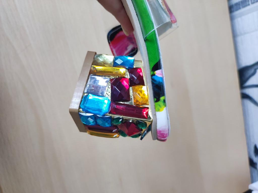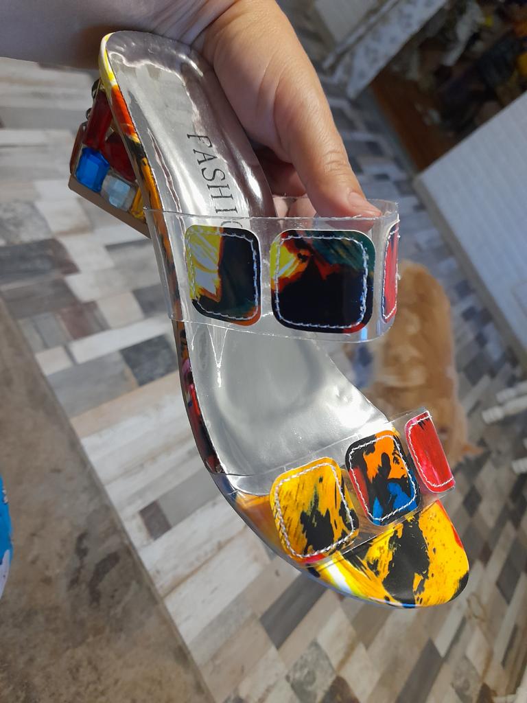 Beautiful, bright slippers. The size matches, the stones are all in place.