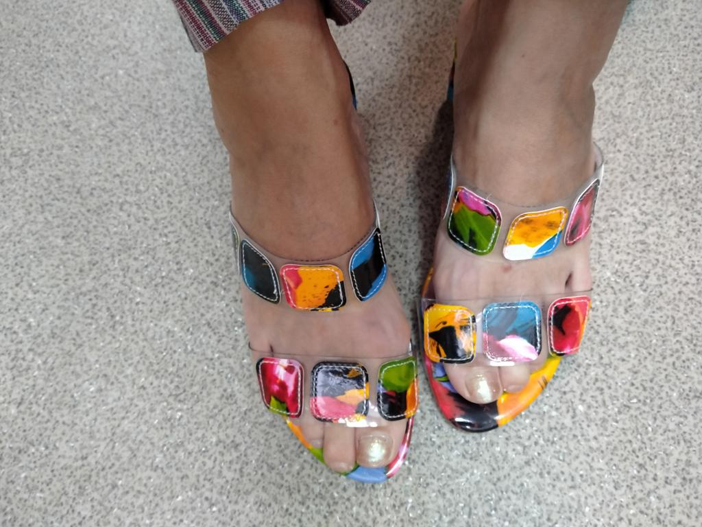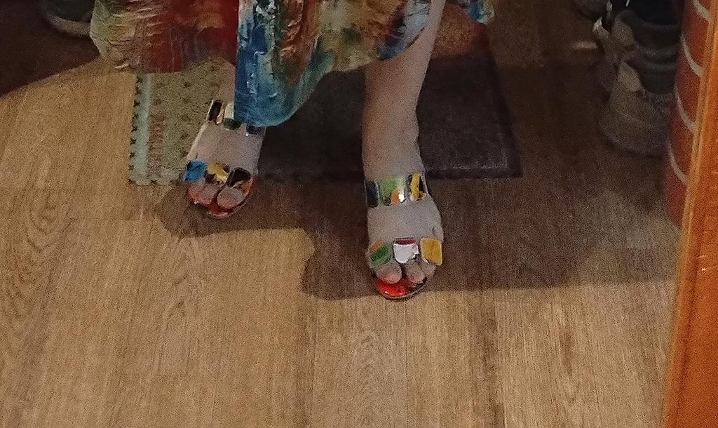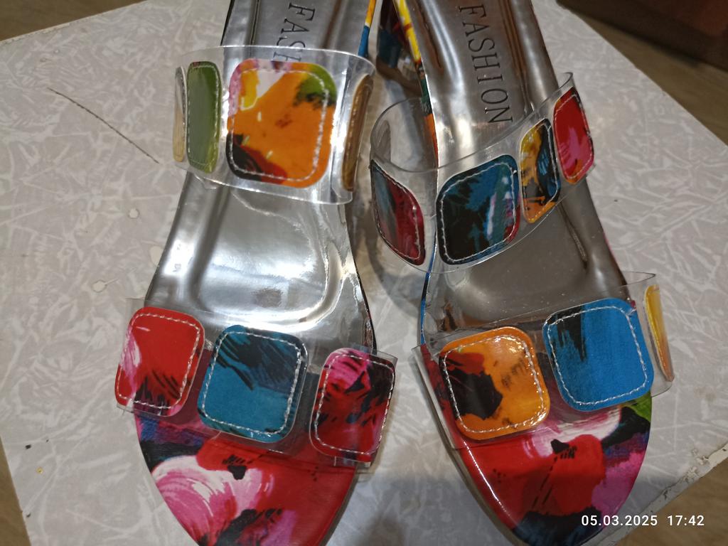 Sandals for summer and indoors, it's hard to choose shoes, I have 39.5, I ordered 41, they are a bit big, it could have been 40, but otherwise they are cheerful and bright