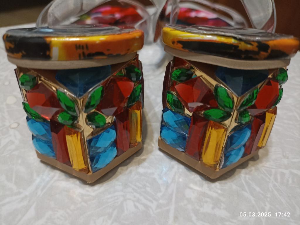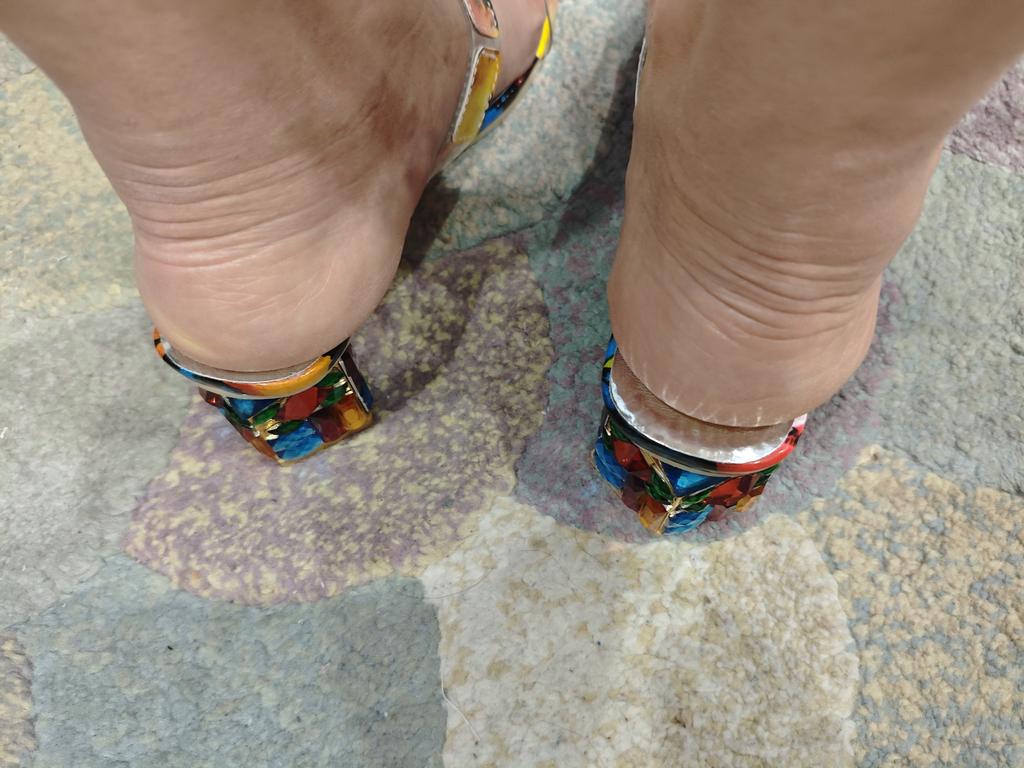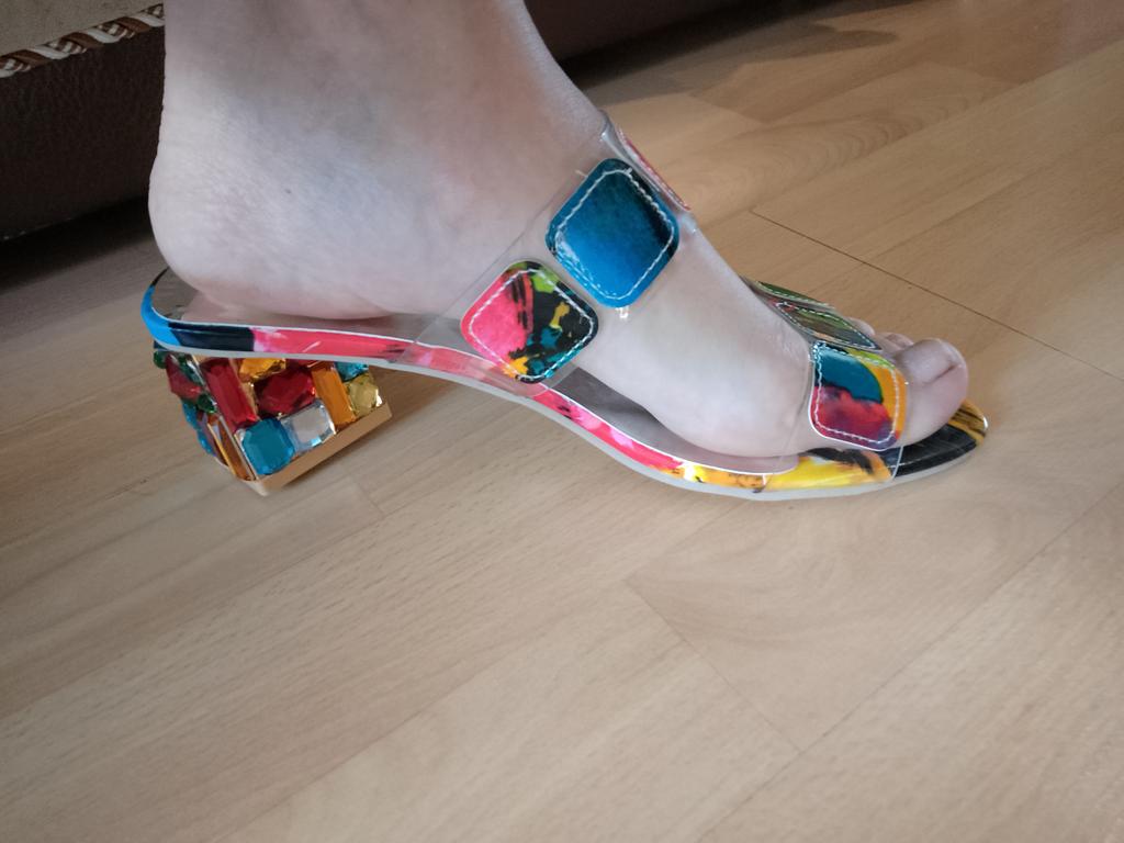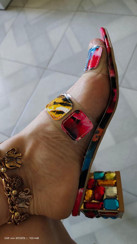 Cool, especially the heel - all in stones. A little small, keep in mind. They attract attention! The heel is not high, but I can't say that it is absolutely comfortable, you can feel that they are not on a flat sole.