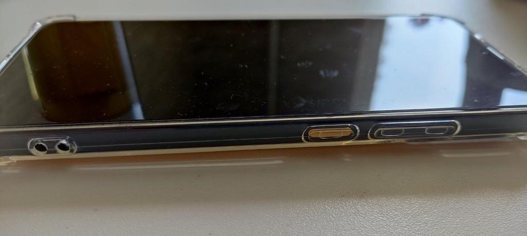 The transparent silicone cover, pleasant to the touch, has protective edges on the corners, fits the size, all cutouts match.