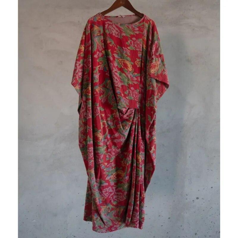 Johnature Women Vintage Irregular Dresses O-Neck Sleeveless Print Floral Robes Summer Chinese Style Women Dress