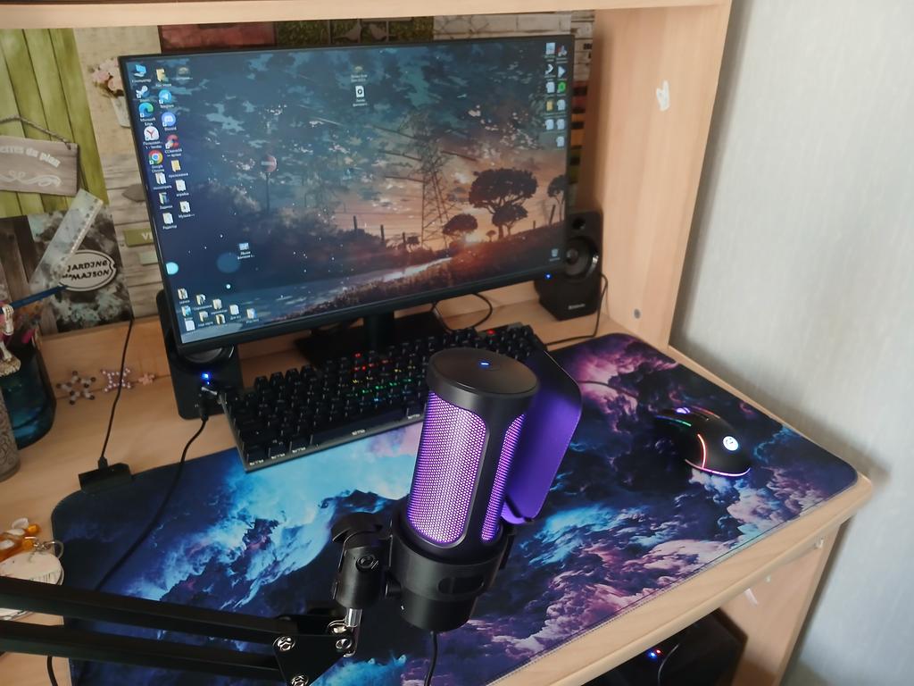 USB Microphone for PC with Boom Arm for Podcast Video, Streaming, Condenser Microphone with Quick Mute, RGB Indicator Light, Shock Absorbing Stand — buy online with free worldwide shipping!