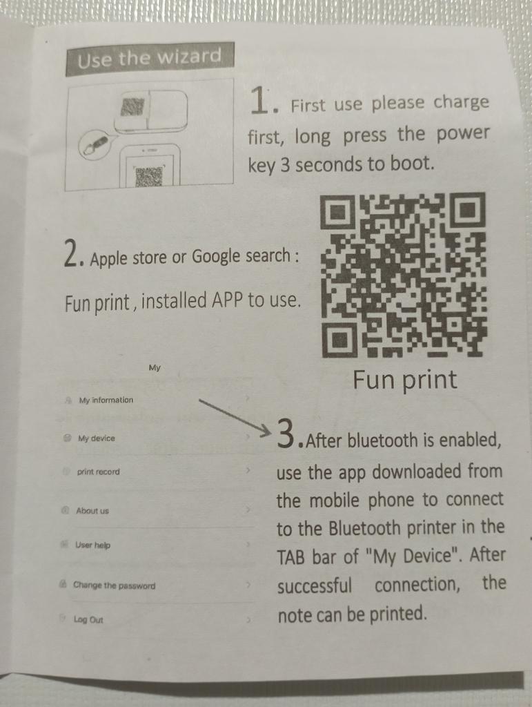 Came charged, connected quickly, need to download the Fun Print app. Prints great 🤩