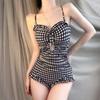 Ladies Fashion One Piece Ruffled Lace Up Back Swimsuit Solid Tummy Control Slimming Monokini Padded Hot Spring Swimwear Sexy Bikini Women Bathing Suit
