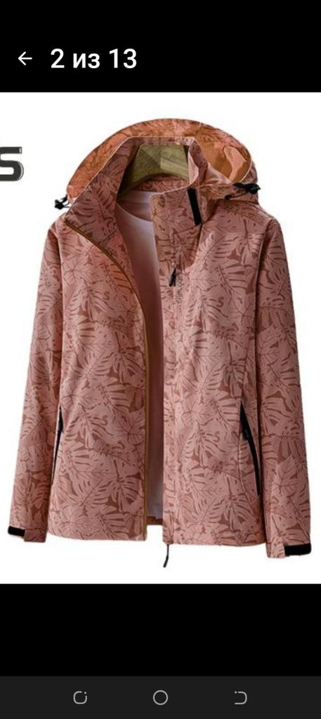 Women Jacket Outdoor Windbreaker Leaf Print Single layer Waterproof Breathable Long Sleeve Hooded Zipper Pockets Zip Up Lady Fall Spring Coat — buy online with free worldwide shipping!
