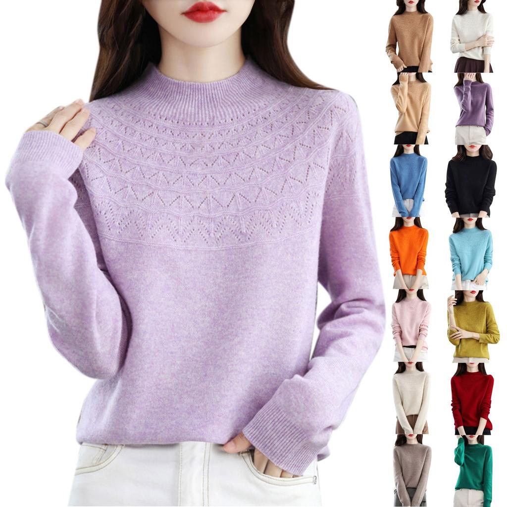Women's Long Sleeved Knitted Sweater Half High Collar Loose Thin Top — buy online with free worldwide shipping!