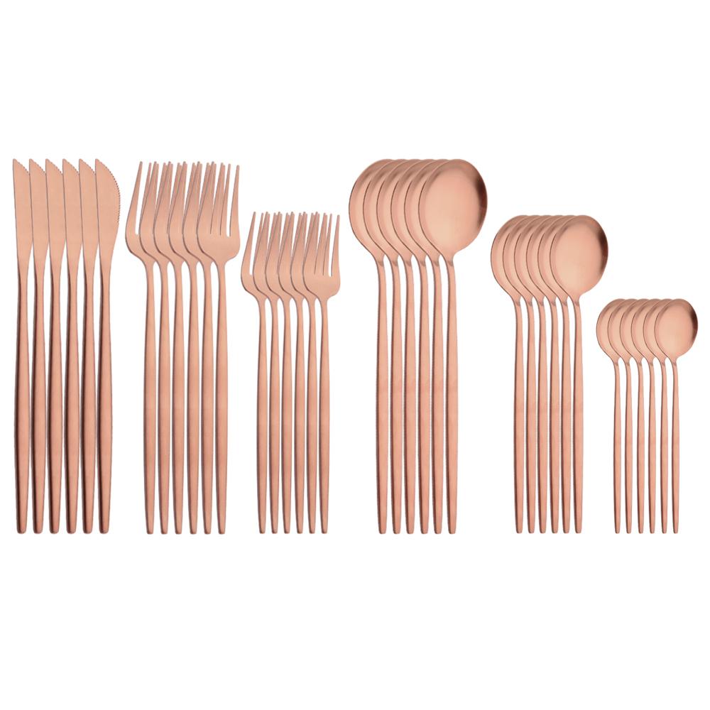 6People Pink Gold Stainless Steel Flatware Cutlery Set Steak Knife Dessert Fork Spoon Dinnerware Set Matte Kitchen Tableware Set — buy online with free worldwide shipping!