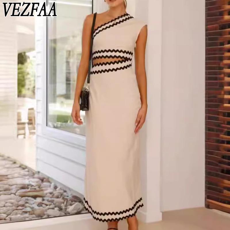 VEZFAA Women's Fashion Summer Spring Lace Print Sleeveless Oblique Collar High Waist Casual Dresses — buy online with free worldwide shipping!