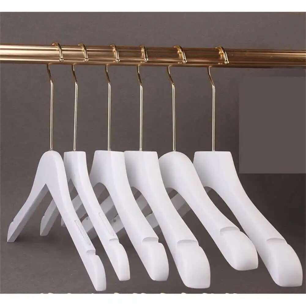 5PCS White Lady Garment Hangers White Wooden Store Chothing Display Hanger Golden Hook Korean Version Custom Logo Engraved