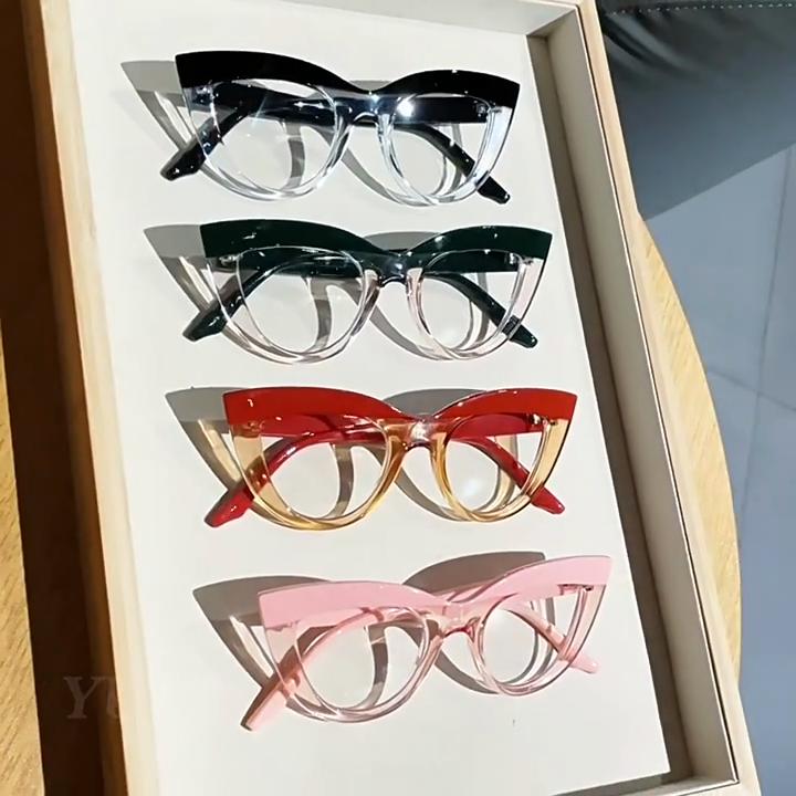 Fashion European Cat Eye Reading Glasses New Design Color Blocked Large Frame Presbyopia Glasses for Women Men Anti Blue Light — buy online with free worldwide shipping!