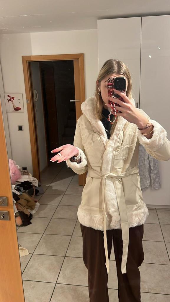 Women's Faux Leather Jacket With Faux Fur Collar, Winter Long Sleeve Furry Trim Peplum Parka Coat With Belt — buy online with free worldwide shipping!