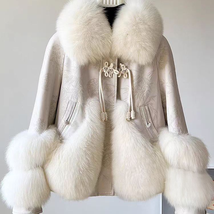 Winter Fashion Thickened Faux Fur Coat Women with Fur Collar Sheepskin Leather Jacket