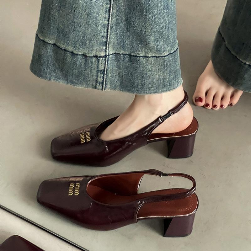 Fashion Commuter Sexy Thick Heel Square Head Bag Head Sandals Women's 2025 Summer New Rear Strap Elastic High Heels