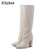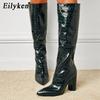 New Fashion Women's Boots Solid Color Snake Pattern Women Knee-High Boots Pointed Toe Winter Ladies Long Booties Handmade Shoes