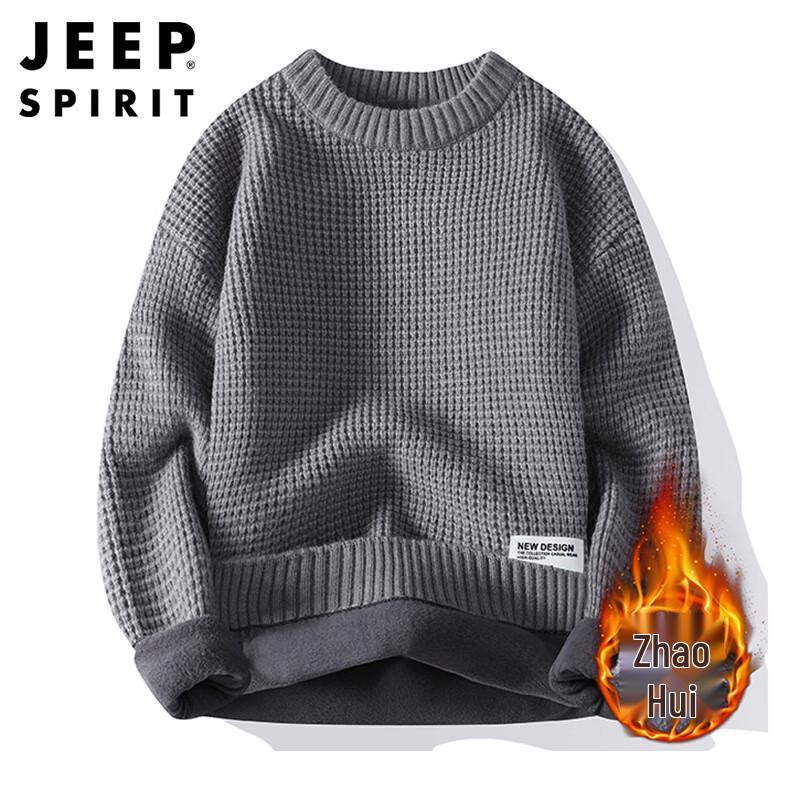 JEEP SPIRIT Men's Winter Fleece-Lined Crew Neck Knit Sweater — buy online with free worldwide shipping!