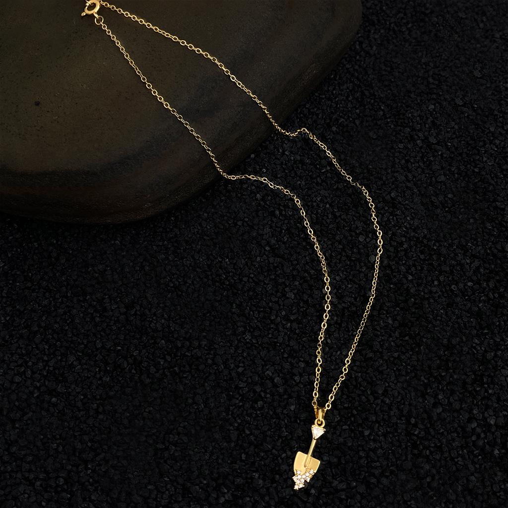 18K Gold Zircon Shovel Pendant Necklace - Luxury Clavicle Chain for Women — buy online with free worldwide shipping!