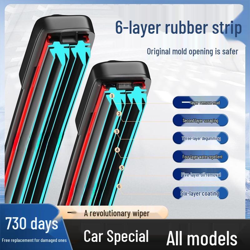 Silent Silicone Wiper Blades: Double 6-Layer Bone-Free Rubber for Front & Rear