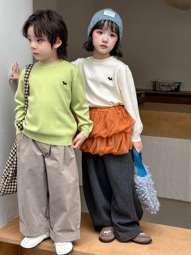 Kids' Knitted Crew Neck Sweater - Autumn/Winter, Embroidered, Loose Fit, Unisex — buy online with free worldwide shipping!