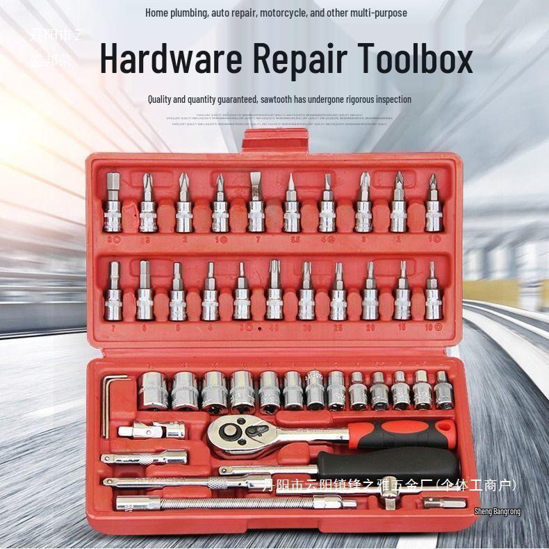 46-Piece Car & Motorcycle Repair Tool Set - Socket, Ratchet Wrench, Hex Key — buy online with free worldwide shipping!