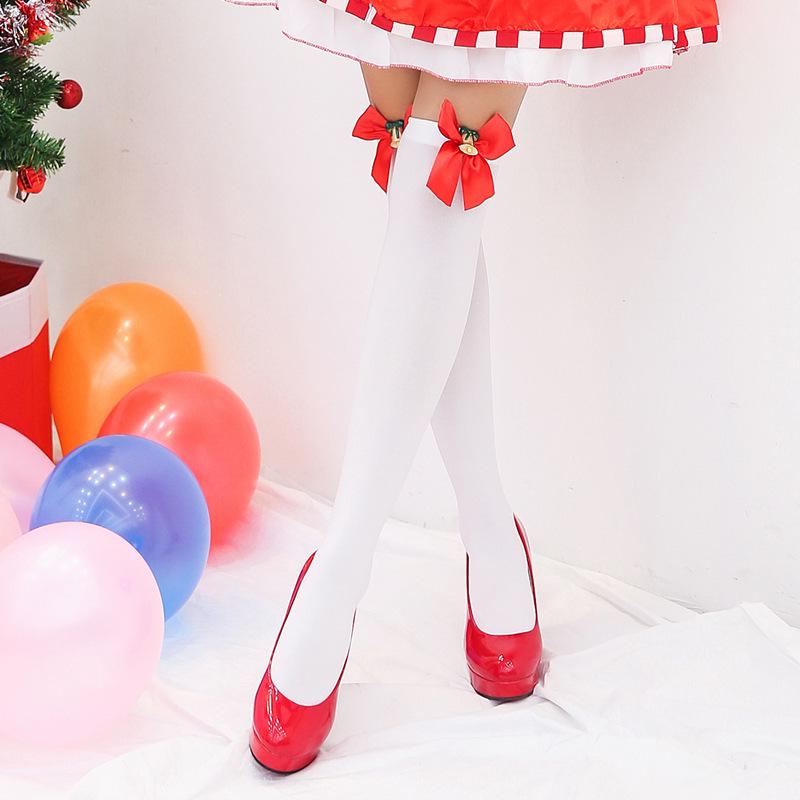 2017 Christmas Bell Thigh High Socks - White Over-the-Knee Festive Costume Socks