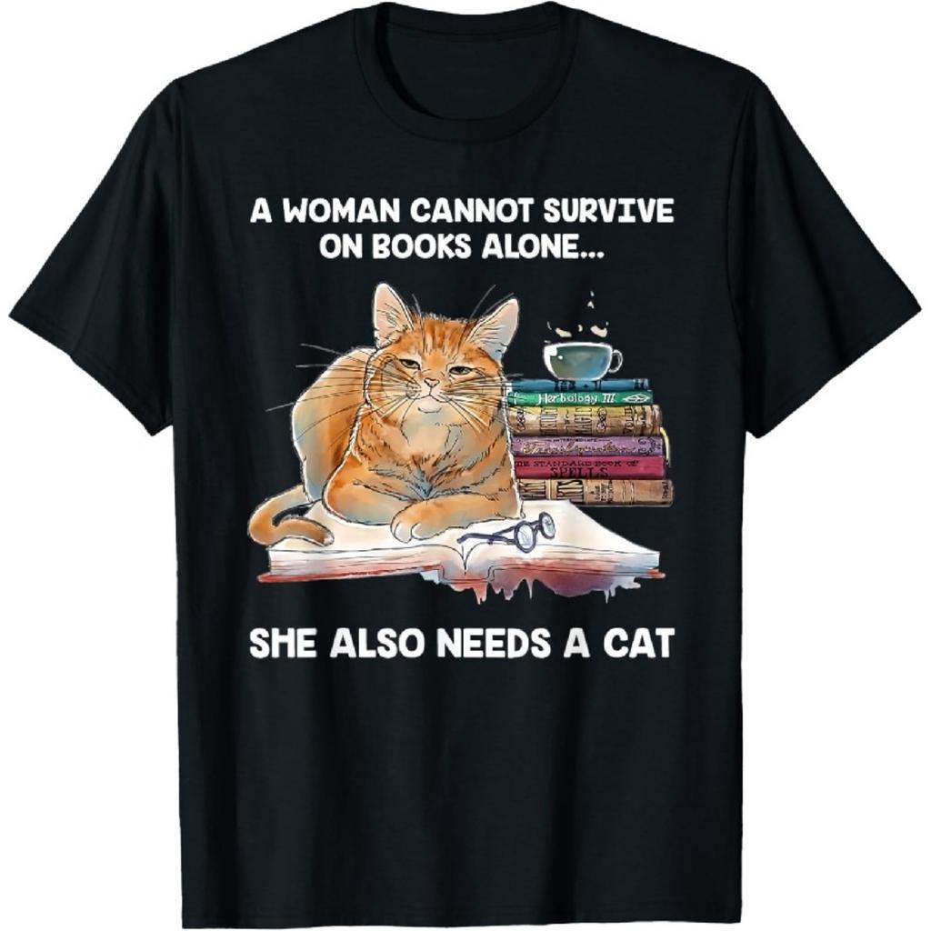 A woman cannot survive on books alone she also needs a cat T-Shirt — buy online with free worldwide shipping!