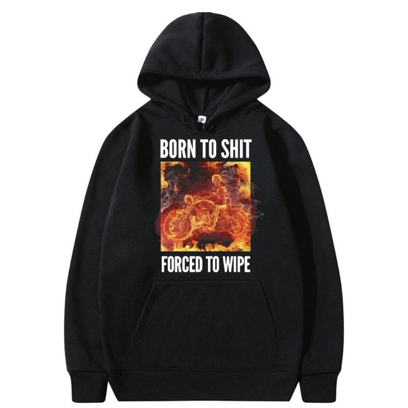 Born To Shit Forced To Wipe Print Hoodie 90s Vintage Flame S Unisex Printed Hooded Street Wear Hooded Shirt Pullover Harajuku